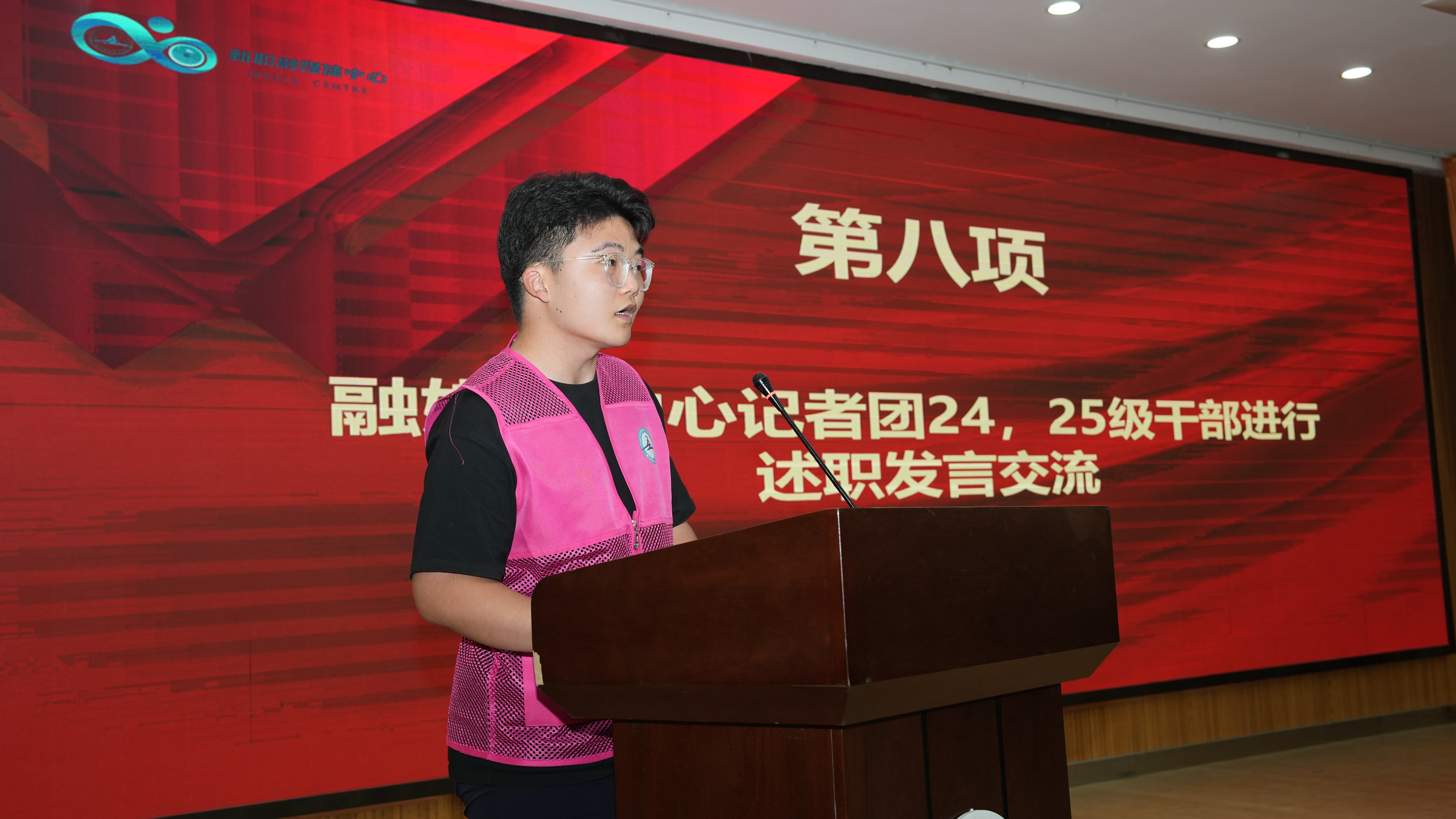 融媒体中心记者团第24届与第25届学生干部代表依次上台进行述职发言与工作交流。卸任干部分享了宝贵的工作经验和深切感悟,新一届骨干则满怀信心地阐述了未来的工作规划与愿景,展现出校园媒体人锐意进取、薪火相传的蓬勃气象。