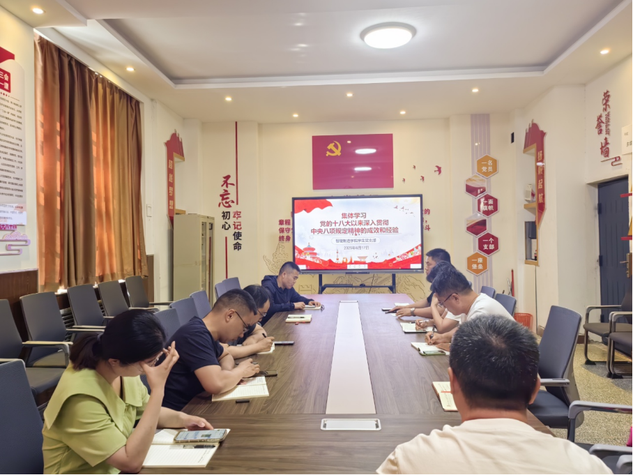 6月17日下午,智能制造学院学生党支部在六号实训楼党员活动室召开会议集体学习党的十八大以来深入贯彻中央八项规定精神的成效和经验,支部全体党员同志参加学习。