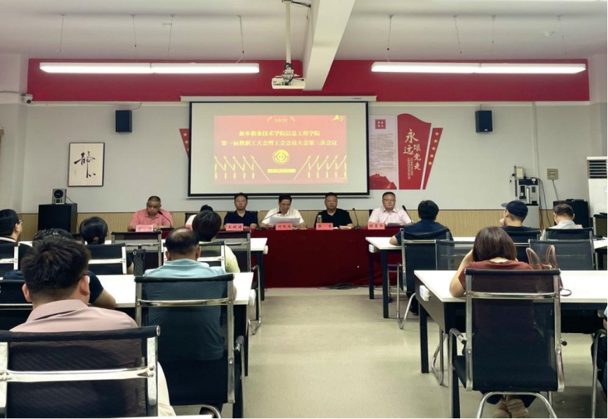 6月23日,信息工程学院第一届工会会员大会暨教职工大会第三次会议在实验楼218会议室召开。会议由学院分工会组织委员郑伟同志主持,学院全体教职工齐聚一堂,共商学院发展大计。