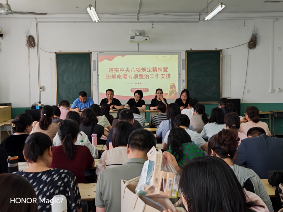 党总支书记李德武首先传达了学校党委关于深化落实中央八项规定精神的决策部署,强调省委、市委对违规吃喝专项整治进行再安排再部署,专项治理将持续到年底。他强调,全体教师要深刻认识“四风”问题的顽固性和反复性,特别是违规吃喝这一"舌尖上的腐败",必须保持高度警惕,筑牢思想防线。