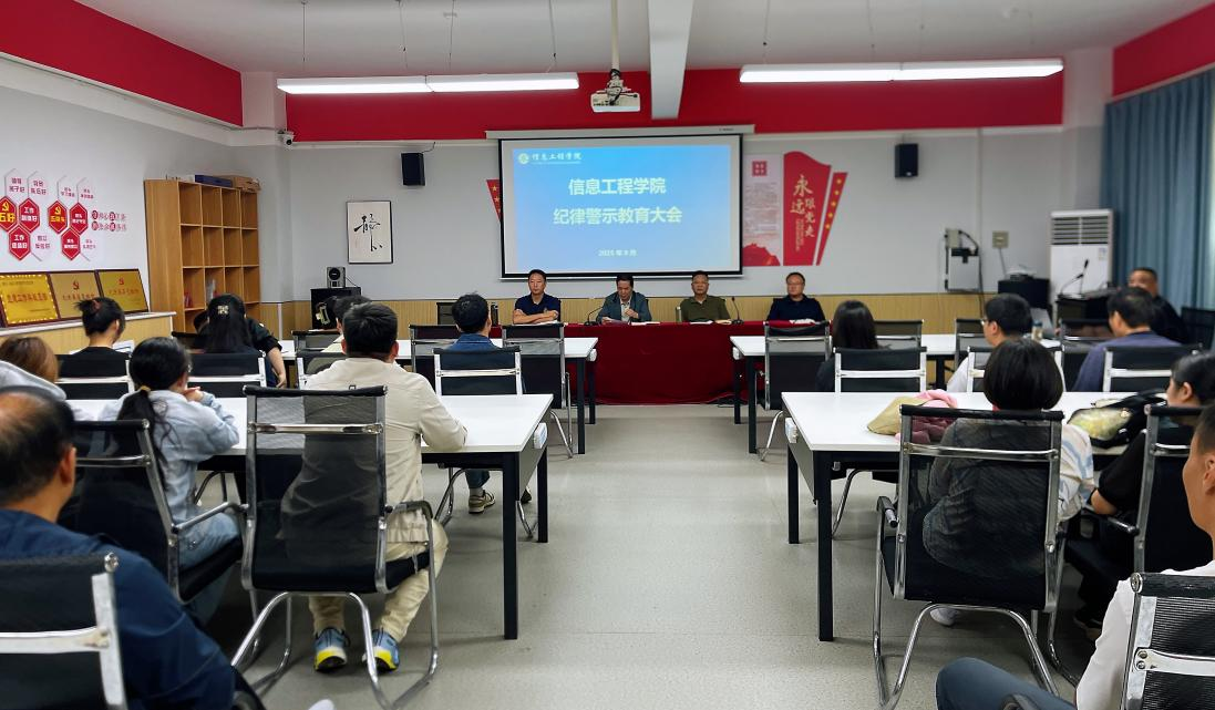 为深入贯彻全面从严治党要求,强化教职工纪律规矩意识,切实防范各类违纪违法风险。9月30日,信息工程学院在实验楼218会议室召开纪律警示教育大会。学院领导班子成员、全体教职工参会,会议由院长刘民庆主持。
