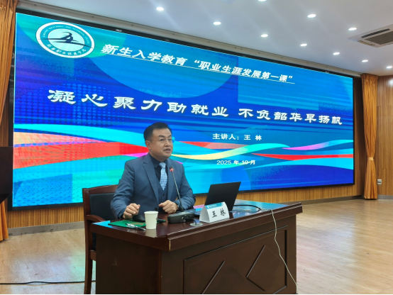 为深入贯彻落实省教育厅办公室关于组织开展2025级大学新生入学教育“职业生涯发展第一课”的通知精神,把就业创业教育作为全员全过程全方位育人的重要内容,10月17日,我校特邀河南职业技术学院大学生素质发展中心负责人王林副教授担任主讲,在实验楼一楼阶梯教室成功举办“大学生职业规划第一课——全国大学生职业规划大赛专题讲座”。各二级学院创新创业工作负责人、专干教师、大赛指导教师及2025级新生代表共同参加。