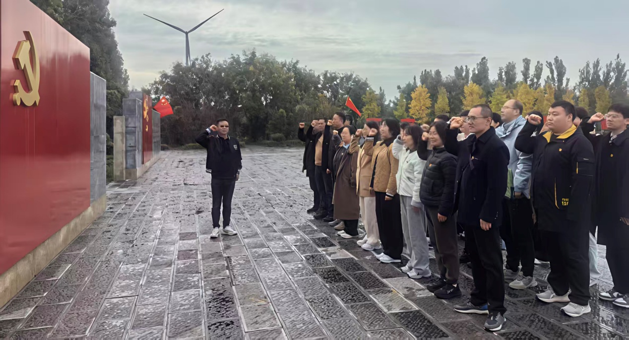 随后,全体党员前往挺进广场,在鲜红的党旗下庄严列队,重温入党誓词。铿锵有力的誓言回荡在广场上空,既是对革命先辈的深切缅怀,更是对初心使命的坚定重申,进一步筑牢了“为党育人、为国育才”的思想根基。