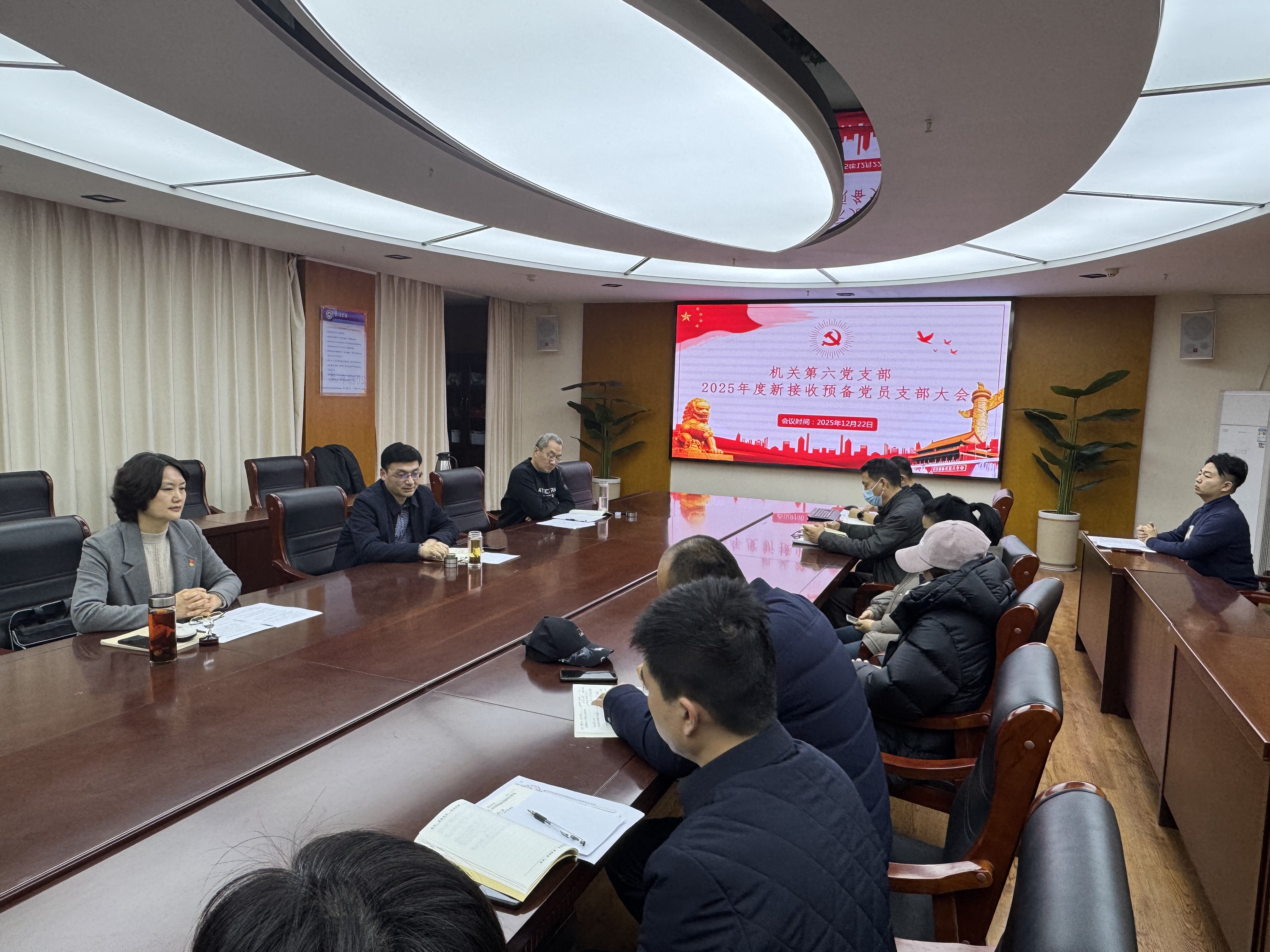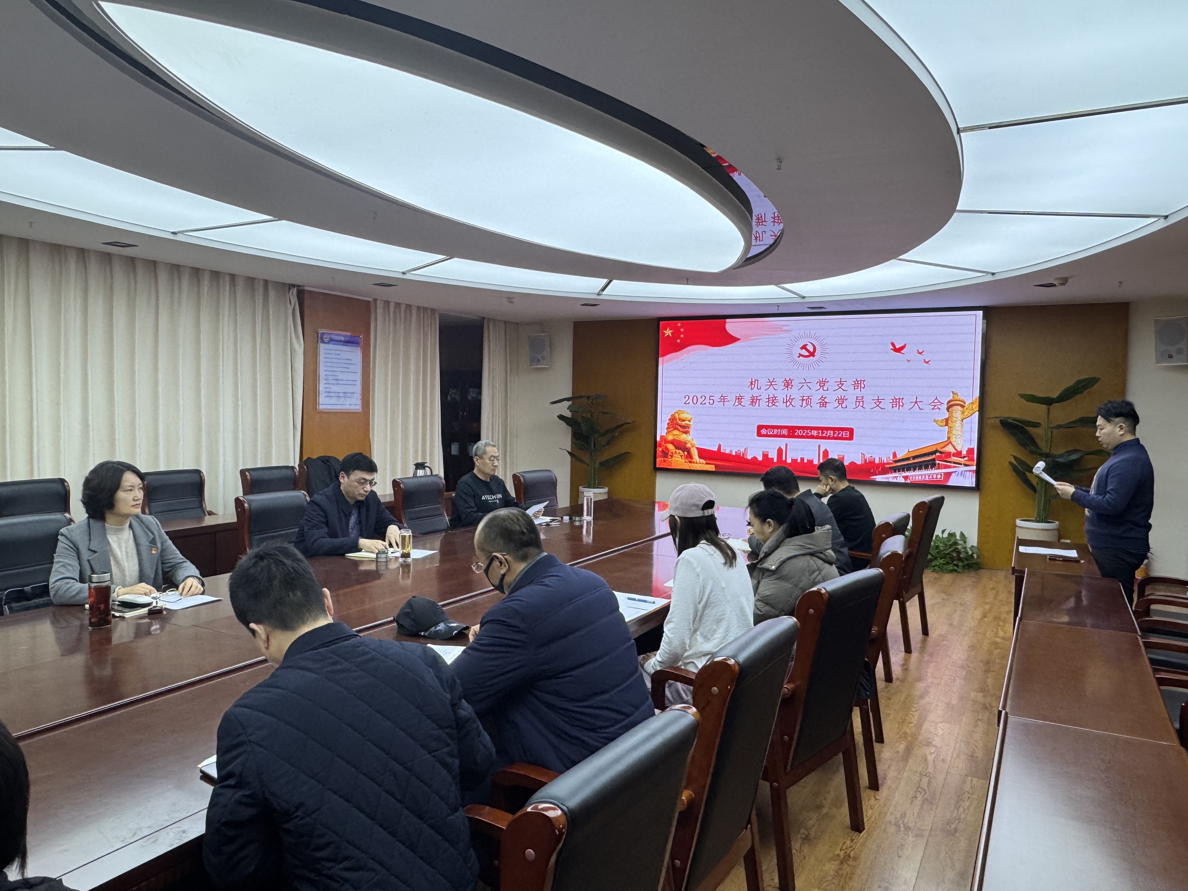 2025年12月22日,机关第六党支部召开支部大会,审议并表决通过接收张志豪为预备党员的决议,党委副书记闫金友出席会议并讲话。