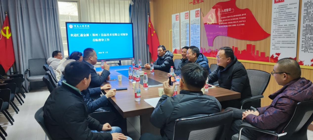 1月8日上午,汇通金源(郑州)信息技术有限公司董事长顾明卿一行莅临新乡职业技术学院进行参观交流。信息工程学院院长刘民庆、新乡职业技术学院科研处处长银利军等陪同参观并参与座谈。
