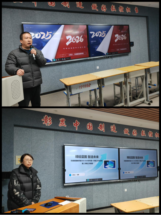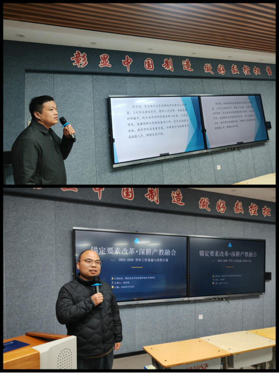 会议第一阶段聚焦教研室的总结与展望。各教研室主任依次发言,围绕教育教学改革、科研创新突破、技能竞赛筹备、校企深度融合以及新入职教师与专兼职教师队伍培养等核心工作,对上学期的工作进行了系统梳理,并汇报了本学期的详细工作计划与具体举措。汇报内容详实,思路清晰,既展示了各教研室在过去一学期取得的丰硕成果,也直面问题与不足,对新学期的工作进行了前瞻性的规划与设计。