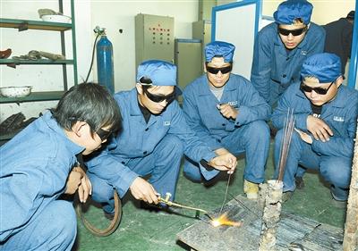 11月14日,农民学员正在接受焊接技术培训。据了解,为解决平原新区当地农民就业问题,促进农村劳动力转移,新乡技师学院对来自原阳县祝楼乡、原武镇78名农民进行为期一个月的免费焊接技术培训。使他们掌握创业技能,改“从土里刨食”为“靠技术吃饭”。本报记者 高志勇 摄