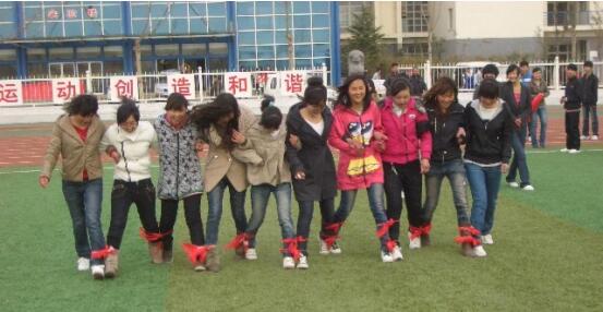 比赛以班级为单位,采取“十人十一足”形式,跑步距离40米,用时短者胜。比赛开始,各选手都鼓足干劲,同心协力向终点稳步走去,拉拉队员也奋力呼喊着加油,场面异常热闹。所有班级都顺利地抵达终点,活动获得圆满成功。