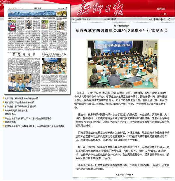 《新乡日报》5月3日报道我院办学方向咨询年会和供需见面会