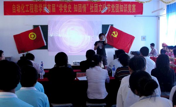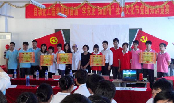 近日,自动化工程教学部“学党史-知团情”社团文化节党团知识竞赛正式拉开了帷幕,宣传部副部长黄海、学生处负责人柴梅、校团委负责人杨玺及自动化工程教学部党支部书记张广珍、副主任马志刚、团支部书记邓耀全参加了此次知识竞赛。