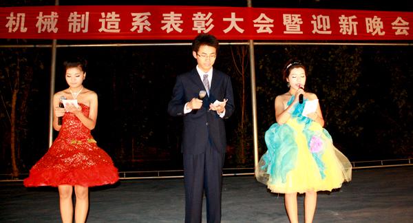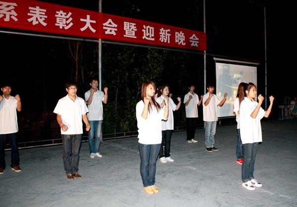 9月20日晚,机械制造系在学院足球场隆重举办了“优秀学生”表彰大会暨迎新联欢晚会,晚会由崔立峰副主任主持,机械制造系领导及全体师生参加了本次联欢会。首先,盛艳君主任在表彰大会上致辞,对2011级新生的到来表示欢迎。随后,杨鸿林书记宣读了“优秀社团”、“优秀班集体”、“优秀团支部”、“优秀学生会干部”、“三好学生”等获奖名单,并对获得表彰的个人和集体表示祝贺,希望获奖同学珍惜荣誉、谦虚谨慎、积极创新、再接再励,争取通过努力做出更大的成绩。徐凯副主任宣布了机械制造系参加河南省数控技能大赛及机械制图竞赛获奖人员名单,并对学生在技能竞赛及学习等方面提出更高的要求。