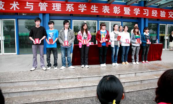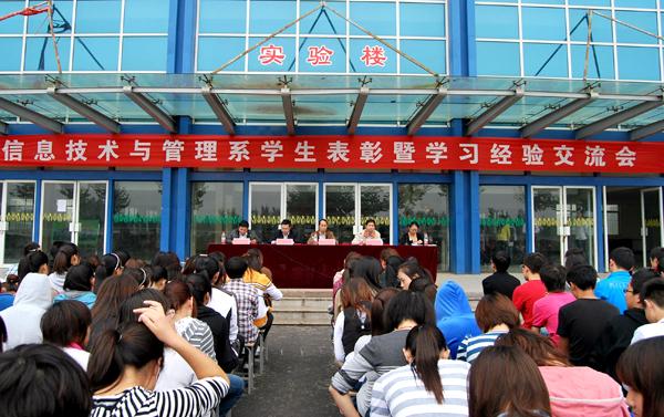 9月27日下午2:30,信息技术与管理系召开了学生表彰暨学习经验交流会。表彰会上,赵主任宣布了受表彰的136名同学,15个班级,09会电2班赵婕和10会电4班王娇娇2位同学做了学习经验典型发言,马主任就教学工作进行了部署,原主任就学生管理工作提出了具体的要求,郝主任从“五爱”思想(爱学院、爱系部、爱专业、爱班级、爱自己)的树立,良好习惯的培养,以及对新学习的希望,向全体师生提出了新的要求。