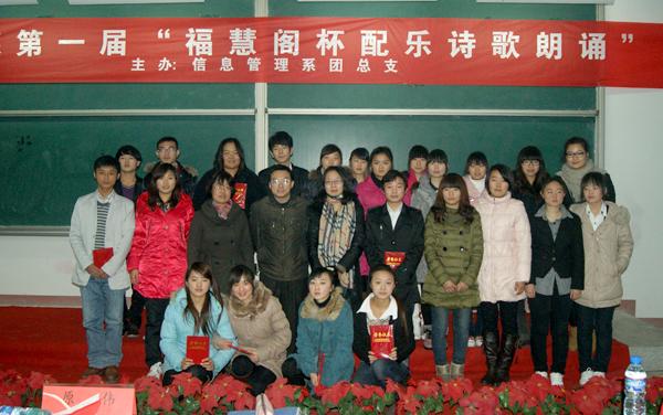 为深入贯彻落实十七届六中全会精神,引导学生积极参与校园文化建设,进一步提升大学生的文化品位, 11月28日下午信息系团总支在实验楼举办了“福慧阁”杯配乐诗歌朗诵大赛。本次比赛的15组选手伴随着优美的音乐,以情感激扬,富有感染力的朗诵博得了台下阵阵掌声。张斯嘉朗诵的《我的爷爷》更是将现场气氛推向了高潮,最终获得一等奖。