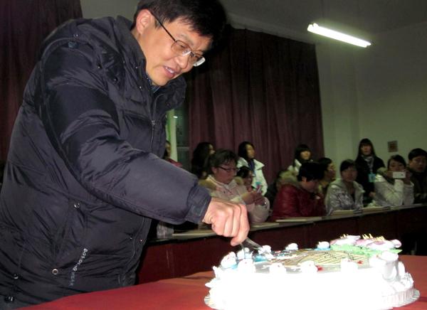 赵金周副院长和信息系领导郝同武、原伟、国晖为09级毕业生们切开了离别的蛋糕,学生会的同学们将蛋糕送到了师兄师姐手中。为他们大学时代的青春回忆划上了美好圆满的句号!