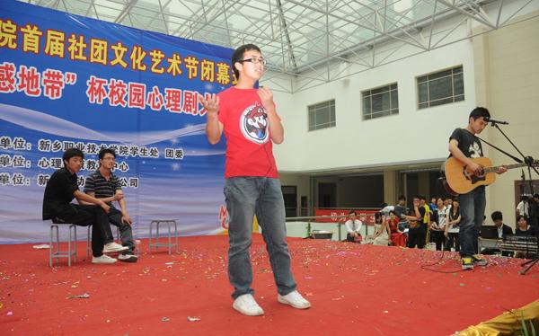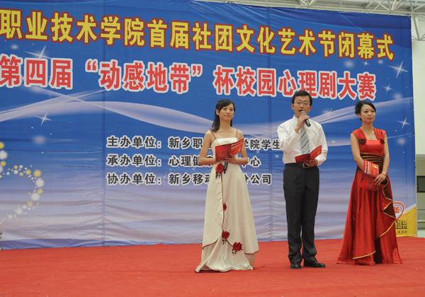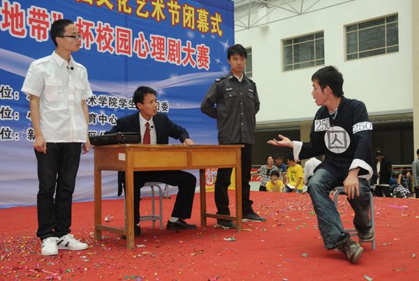 5月24日下午,我院综合楼二楼掌声不断,气氛热烈。由院学生处、团委主办,心理健康教育中心承办的首届社团文化艺术节闭幕式暨第四届“动感地带”杯校园心理剧大赛在这里隆重举行。院领导张林、杨剑虹、赵金周等与高职各教学系共1000余名师生观看了比赛。