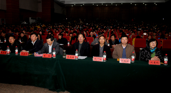 学院党委书记朱性福在晚会上发表新年致词,向全体教职员工和全体同学致以美好的新年祝愿和节日祝福,他热情洋溢地总结了过去的一年学院取得的可喜成绩和诸多荣誉,希望全院师生进一步解放思想,团结奋进,推进学院各项工作取得新的佳绩,创造新的辉煌。
