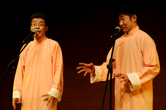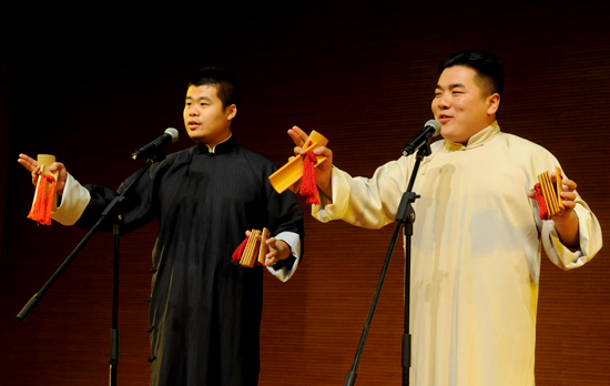 演出上,河南省曲艺团的艺术家们带来了一系列精心编排的节目。演出在曲韵《夸河南》中拉开序幕,快板书、三弦、琵琶等节目形式展现了我国传统文艺的艺术魅力,河南坠子、山东快书、变脸、河洛大鼓等节目演绎出了不同地域的曲艺风格,赢得了现场观众的热烈掌声。整个演出节目精彩纷呈、形式多样。