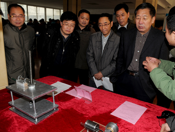 12月19日下午,机械制造系在二号教学楼一楼大厅举行了2015届毕业设计实物展,即将毕业的2015届机械设计专业的学生带着自己精心设计制作的16件作品参加了展览。院领导朱性福、杨剑虹、赵金周以及实训、教务等部门和各兄弟院系的师生观摩了展览。