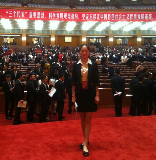 邢亚楠是我院经管学院12级五年制会计专业学生,在我院求学期间,她始终保持着热爱祖国,勤奋学习,热心助人,自强自立的优秀品质。她勤奋学习、团结同学,积极参与开展学团工作,曾获得“三好学生”、“优秀团干”、“优秀学生会干部”等荣誉称号。在去年,邢亚楠同学作为全国学联代表,参加了中华全国学生联合会第二十六次会议。