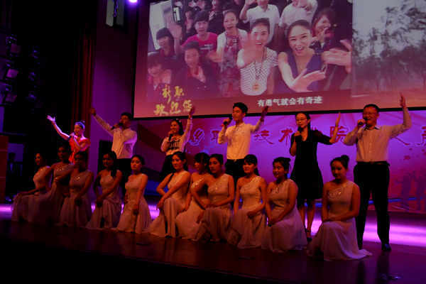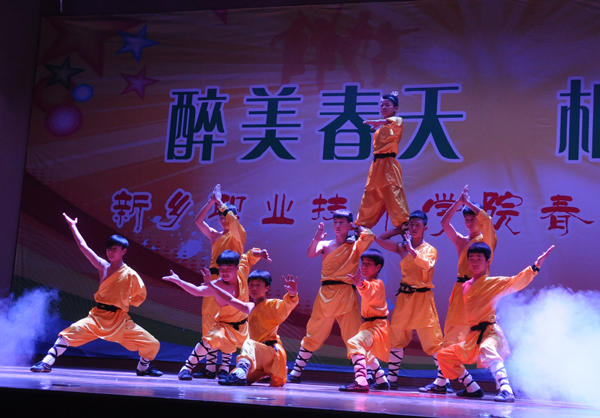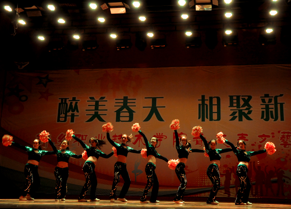 来自全省各地参加今年我院单招考试的部分考生观看了演出。由师生深情演唱的《新职欢迎你》拉开了演出的序幕。古典舞、现代舞、民族舞和古筝演奏让台下观众大饱眼福,来自体育学院武术队的小队员们带来的武术表演把演出推向了高潮。精彩的节目和热闹的气氛让前来参加我院单招考试的考生们愉快地放松了心情,更有助于他们在高考考场上的正常发挥。