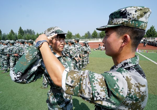 九月,军训季,整个校园活力十足。我院2016级新生的军训火热进行中。同学们一个个身着迷彩服,朝气蓬勃,斗志昂扬。他们站军姿,英姿飒爽,踢正步,步调一致,喊口号,精神抖擞。同学们不但体能和毅力得到锻炼,也增强了纪律性和集体精神。