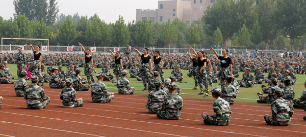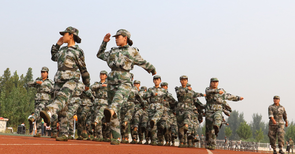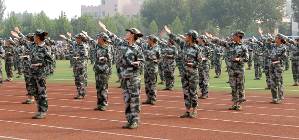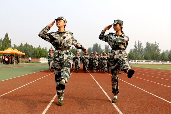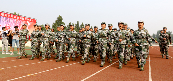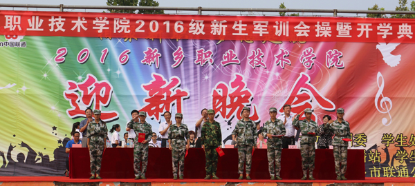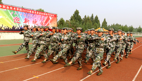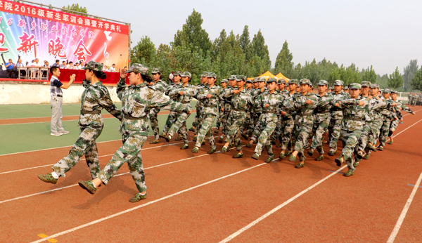 9月16日上午,学院2016级新生军训会操暨开学典礼在体育场隆重举行。