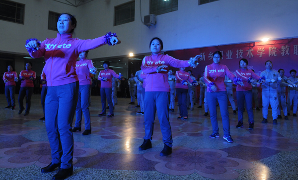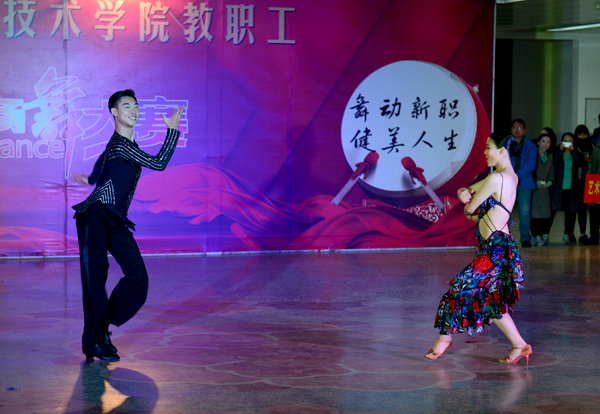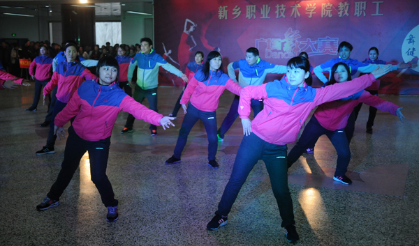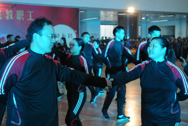 12月20日下午,我院“舞动新职 健美人生”教职工广场舞大赛在综合楼二楼平台上演,各参赛队伍、数百名选手汇聚一堂,尽情展示了他们的舞蹈热情和艺术风采。此次广场舞比赛由学院工会主办,在校校领导出席此次活动。