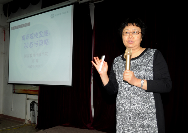 为进一步深化学院教育教学改革,落实深入开展“敢转争”和“三比一创”活动,提升学院办学水平,我院于2017年4月21日特邀全国知名职教专家、国家教育行政学院学术委员会主任、职业教育研究中心主任、中国职教学会科研工作委员会副主任、常务理事邢晖教授作了题为“中国职业教育:动态与策略”的专题报告。学院教务处邵明仓处长主持报告会,各部门负责人、教学单位领导、教研室主任及教师代表聆听报告。