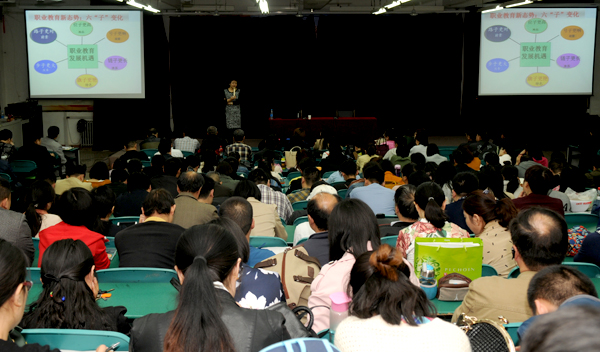整个报告围绕职业教育发展新态势和职业教育的行动策略两个方面对我国职业教育进行了解读。她首先用六个“子”:位子更高、号子更响、链子更长、旗子更艳、步子更大、路子更对等概括了职业教育的发展新态势。对职业教育在国家改革发展中的地位越来越高、政策越来越宽、体系越来越健全、特色越来越鲜明、改革步伐越来越大、未来发展前景越来越明确等六个方面作了讲解。其次邢教授在讲到职业教育未来发展行动策略时用“六个抓”:抓规划、抓质量、抓合作、抓治理、抓项目、抓特色等作了精彩的讲解,邢教授指出只有做好“六个抓”,才能提升学校的办学质量,打响学校的品牌。邢晖教授的报告内容信息量丰富,讲解清晰透彻,对高职院校的教育教学改革与发展极具启发性和指导性。