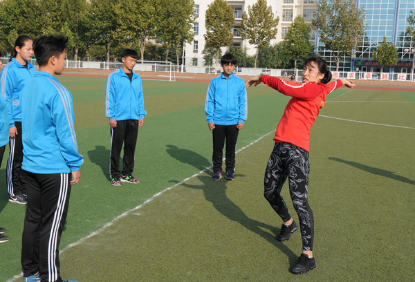 身穿训练服的吕会会在校园显得分外的亮眼,据吕会会介绍,由于一直在外集训参赛,这次回到学校就像回到家一样高兴。在田径场,吕会会对学弟学妹们进行了技术指导,她还现场进行了训练展示,希望通过这种方式勉励他们勤奋训练,早日成才。对于学生来说,吕会会就是他们迈向更高目标的鲜活榜样。在回访学校与师生进行交流时,吕会会对学校给予的支持和培养表示感谢,希望学校越办越好。