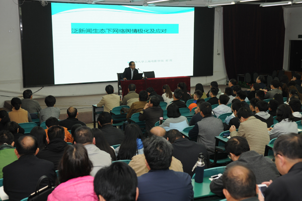 郝雨教授以当前网络舆论现状和网络热点事件为开端,从“新闻:专业的淡出与边界的消失”、“专业主义:原则的退守与导向的无力”、“职业理念:新闻精神的提升与价值观的坚守”,全方位阐述了泛新闻生态下网络传播特征和传播规律。他认为,网络的低门槛和多元化给信息传播提供了便捷,也容易产生副作用和负能量,作为青年学子,应该自觉承负起历史赋予的使命与担当,积极学习网络舆情知识,增强对网络信息的辨别能力,自觉抵制网络副作用,弘扬主旋律,传递时代正能量。