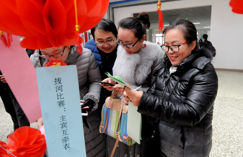 12月29日,由学院工会主办的2018年新年游艺会活动在综合楼一楼大厅举行。活动现场气氛热烈,营造了共庆佳节的喜庆氛围。此次游艺会开展的活动形式多样,内容丰富,既有集知识性和趣味性一体的猜灯谜,又有拔河比赛、套圈等轻松愉悦的小游戏,良好的氛围吸引了众多教职工的积极参与。