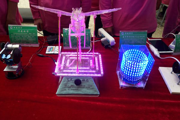 此外,机电系的自动切菜机和行走机械人,材料系的3D建模和液压试验台,电子系的公交车自动报站器公交车自动报站器,师范学院的美术作品和绘本,航海学院的八股纤维缆插接……令人目不暇接的技能成果展示,考量的是对专业的热爱和对细节的观察。