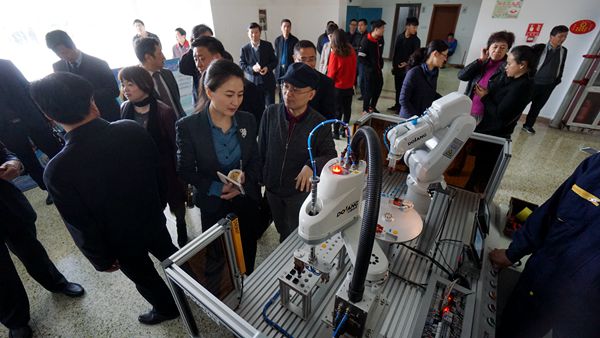 能够操纵处于现代制造技术的高端工业机器人,就必须要学习并掌握工业传感器、柔性生产线、数控维修、PLC自动控制等多项技术,这是对学生机电综合技术和团队协作能力的考验。而机电工程系学生团队可以熟练操纵着机械臂进行的取物、写字、绘画。技能文化节期间,机电系的同学不仅感受到了新机器、新技术的神奇,更让自己的技能找到了用武之地。