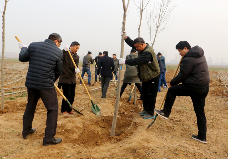 在红旗区长济高速廊道绿化示范点,王建平带领干部职工两三人一组,挥锹铲土、踩实新土、提桶浇水,每一道工序都一丝不苟,栽植下楸树、白蜡等树苗,植树现场一片热火朝天的景象。短短一个多小时,100余株新栽的苗木在明媚的春光中昂首挺立,展现出勃勃生机,为初春的牧野大地平添了丝丝绿意。