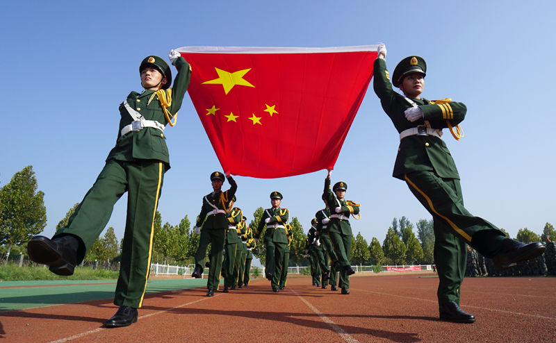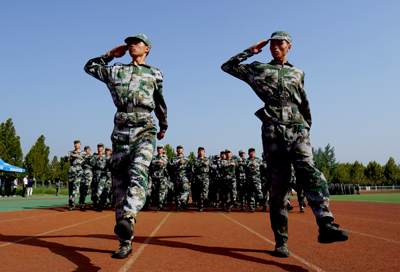 接下来是分列式。14个院系的新生排成整齐的方阵依次经过主席台,他们号令高亢、步伐矫健、训练有素、士气高昂,展示了短短12天的军训成果,反映出新一代大学生积极向上的精神风貌。