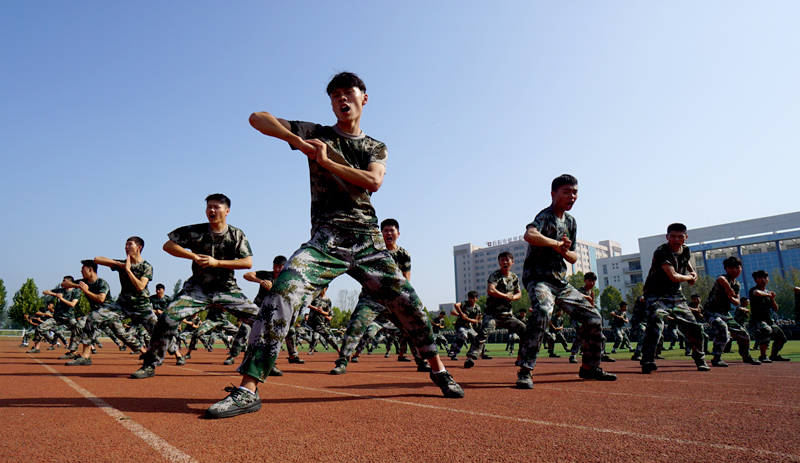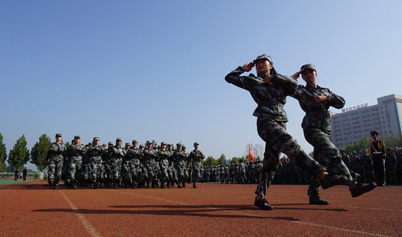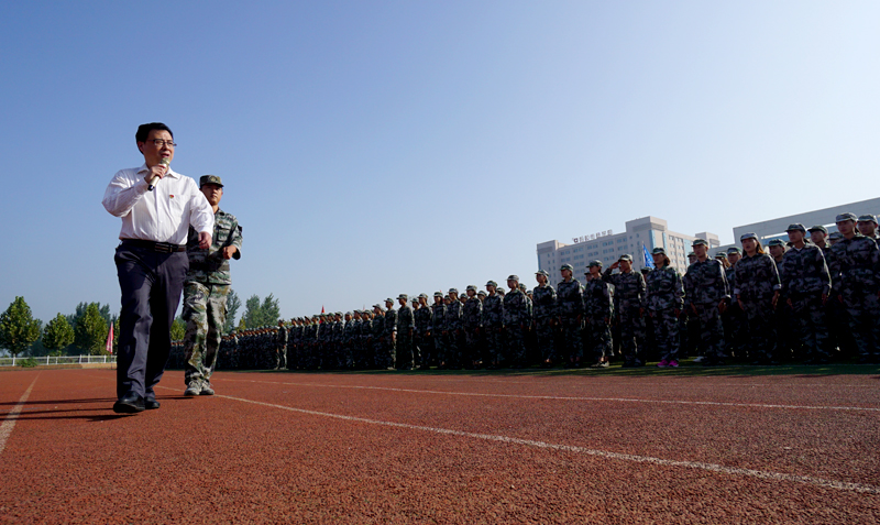 9月21日上午,天朗气清、惠风和畅。学校田径场绿草茵茵,秋意盎然,5500多名新生身着统一的迷彩服,排着整齐的队列,精神抖擞、士气高昂。上午9时,2018级新生军训会操暨开学典礼在这里隆重举行。院党委书记孔凡旭、院长张林、副院长王建平、许毅明、赵金周、纪委书记刘君利、党委委员李红军及各院系党政负责同志、全体新生辅导员和班主任出席了大会。