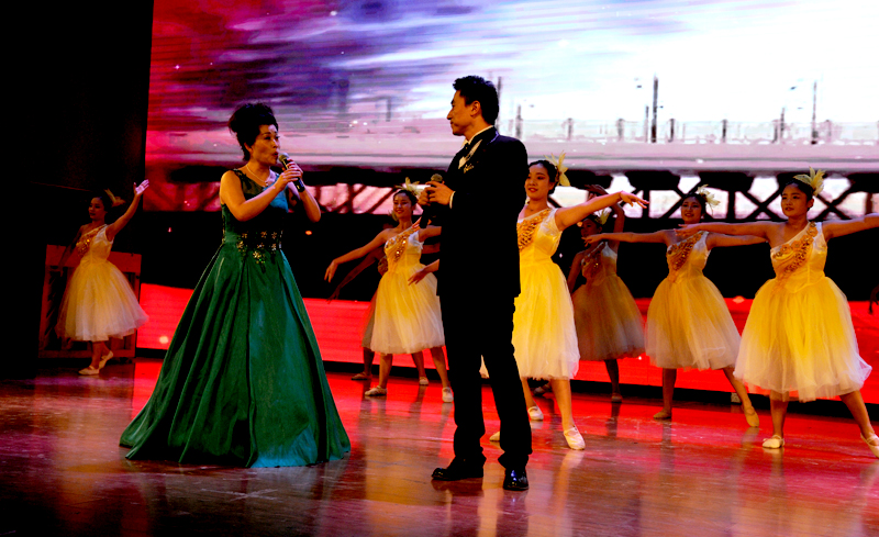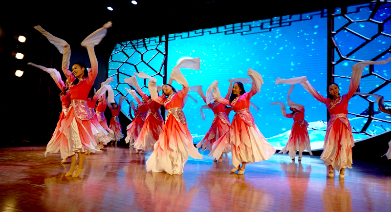 表彰结束后,全体教职工共同欣赏了由师范学院师生精心编排与部分院系同学们共同为老师们奉献的精彩文艺演出。现代学院极富年代感的时装走秀《老师您早》主题鲜明,情真意切,向教师献上的哈达饱含了同学们对老师深厚的情谊;师生共同演绎的《与你相随》唱出了老师的不离不弃,学生的赤子之心;情景剧《长大后,我就成了你》感人至深,引得在场教师强烈共鸣,将演出的气氛推向了高潮;新入职教师的宣誓严肃庄重,让我们再次深感人民教师肩上的重担与责任……