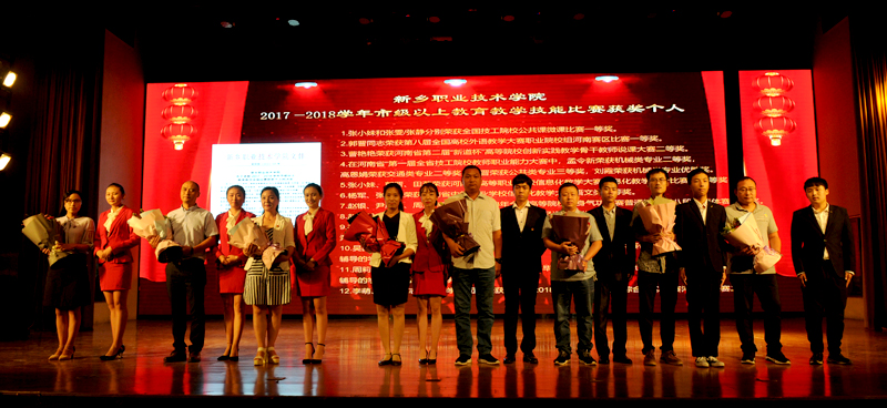 大会表彰了过去一个学年的先进集体、先进党组织以及优秀党员、最美教师、优秀辅导员班主任等先进个人,并由在全国技能竞赛中获奖的学生向技能竞赛优秀指导教师和获得各类教学成果奖的教师代表献花。