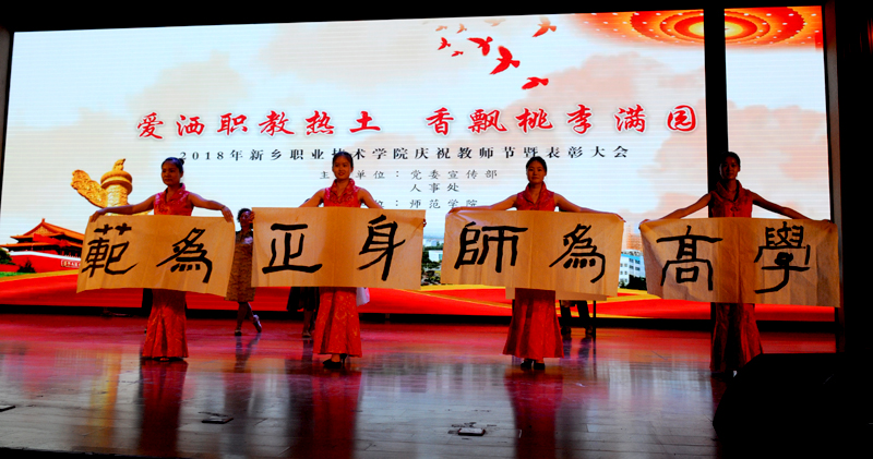 为欢度第34个教师节,9月10日下午学院在综合楼二楼报告厅举行“庆祝教师节文艺演出暨表彰大会”,学院领导和全体教职工欢聚一堂,共同庆祝这个属于我们自己的特殊节日。