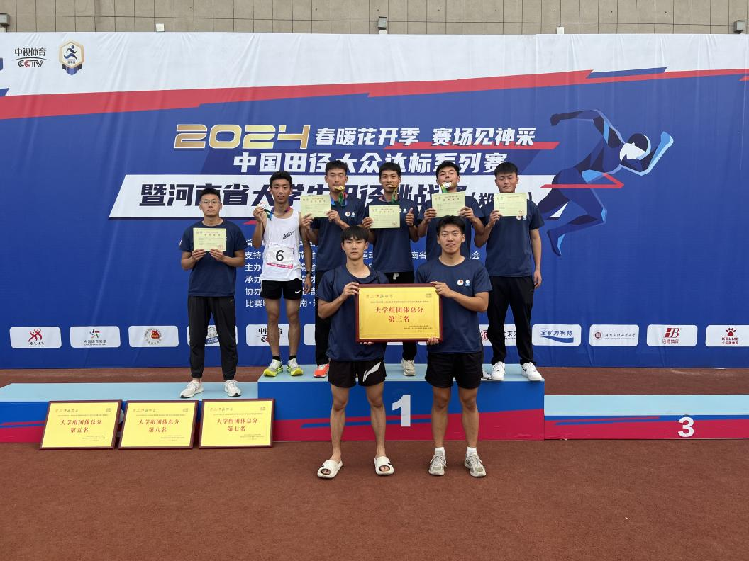 5月26日,在河南政法财经大学举办的2024中国田径大众达标系列赛暨河南省大学生田径挑战赛落下帷幕,全省共31个高校参加,本次比赛为本科与专科院校合组竞技,我校共派出八名高职运动员参加100米、200米、400米、800米、5000米、跳远等项目,八名运动员拼搏鏖战、不畏强敌,最终取得男子800米冠军、男子跳远冠军、男子400米亚军,以43分位居高校团体榜第三名,再次刷新了我校参加省田径运动会的名次。