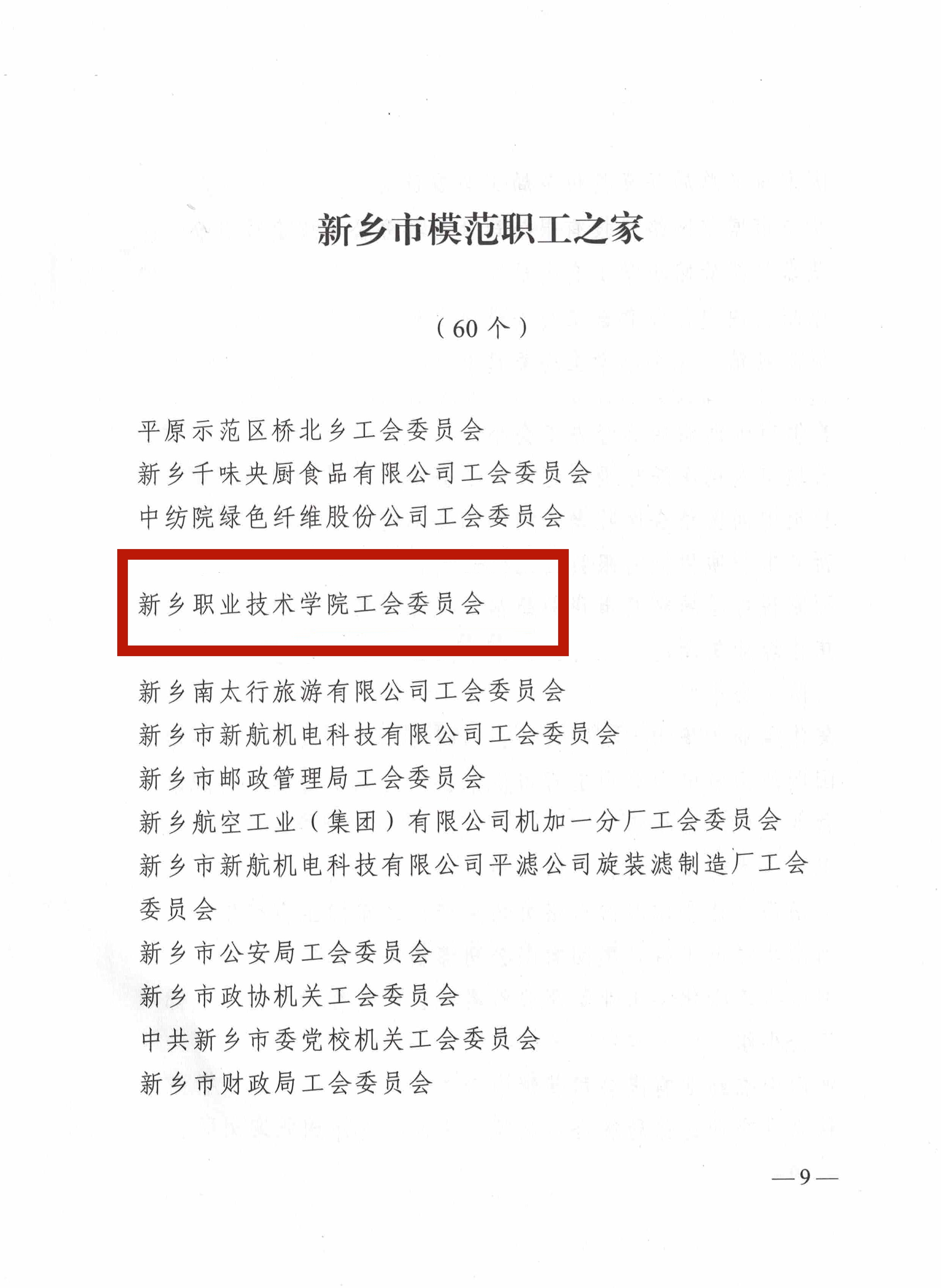 近日,新乡市总工会印发《新乡市总工会关于命名新乡市模范职工之家、新乡市模范职工小家、新乡市优秀工会工作者、新乡市优秀工会积极分子、新乡市优秀工会之友的决定》(新工字【2024】13号),我校工会荣获“新乡市模范职工之家”称号。