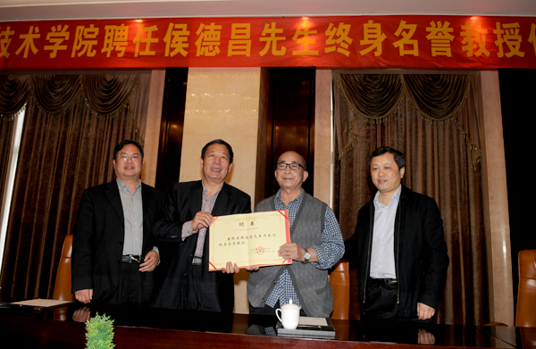 仪式上,朱性福书记为侯德昌先生颁发聘任证书,并从师资队伍、学科建设、人才培养、校园文化建设等方面介绍了学院基本情况。我院领导指出,侯先生作为全国知名书画艺术家,在国内外具有较高的知名度和影响力,希望通过侯德昌先生的帮助和指导,促进我院内涵提升及相关专业的发展。侯德昌先生表示,作为新乡职业技术学院特聘教授,自己愿意尽最大所能为学校发展作出应有贡献。