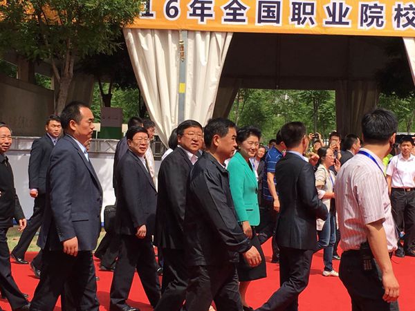 2016年5月8日上午,2016年职业教育活动周全国启动仪式暨全国职业院校技能大赛开幕式在天津举行。中央政治局委员,国务院副总理刘延东出席开幕式并作重要讲话,强调要推动职业教育发展实现新跨越,要把职业教育作为实现教育现代化的重要保障,确保到2020年建成有中国特色的世界水平现代职业教育体系。启动仪式后,刘延东副总理和与会领导现场参观了技能展示活动,我院机电工程系进行了精彩的“工业机器人技术应用”演示。