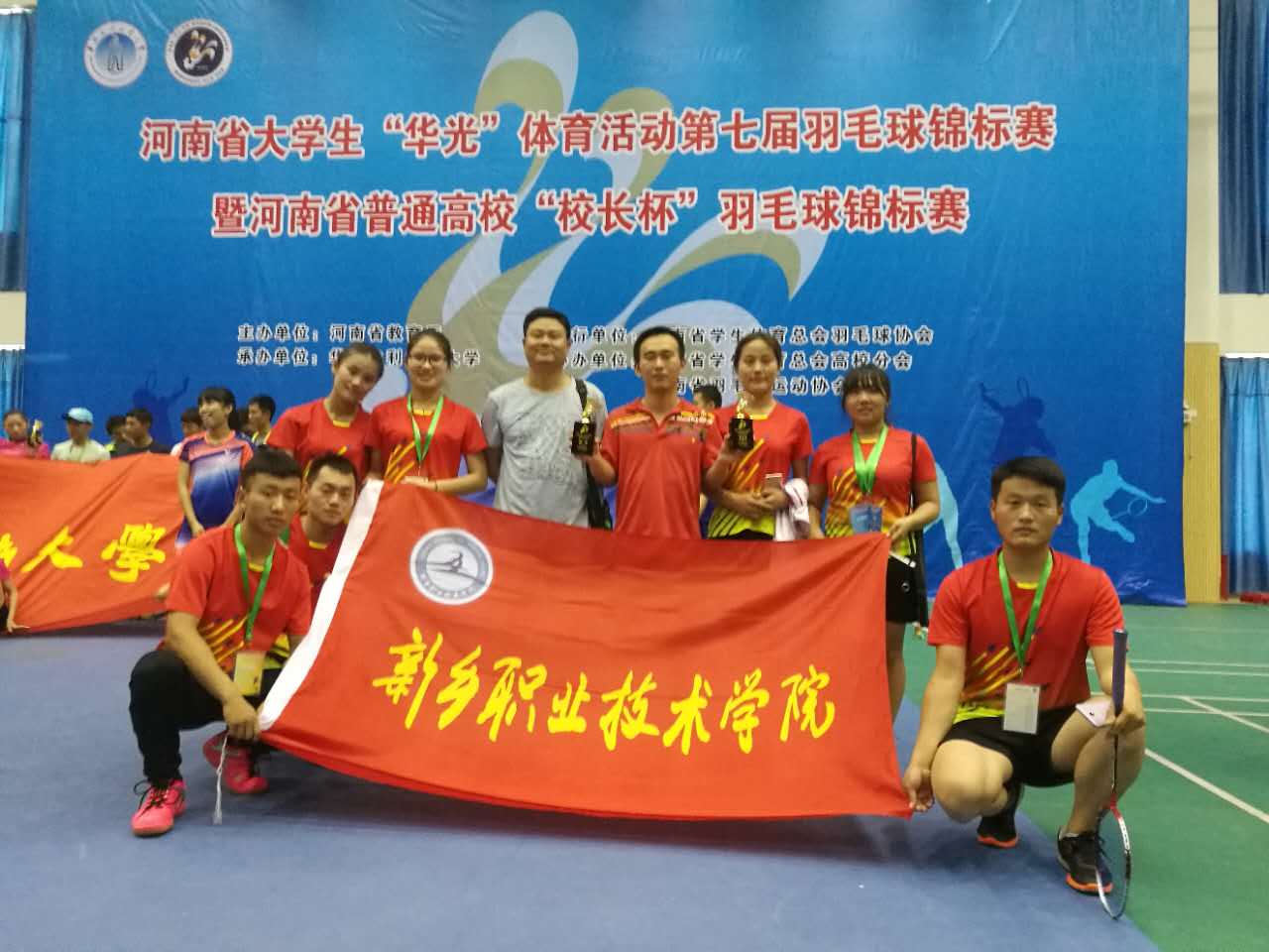 河南省高校“华光”体育活动第六届羽毛球锦标赛日前在郑州举行,本次比赛我校顽强拼搏,荣获蝉联专科组女子团体冠军。在单项比赛中,白茹雪、唐芳获女子双打冠军,冯文超、苗发祥获男子双打第三名、白茹雪获女单第三名。