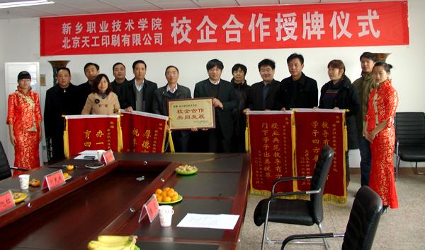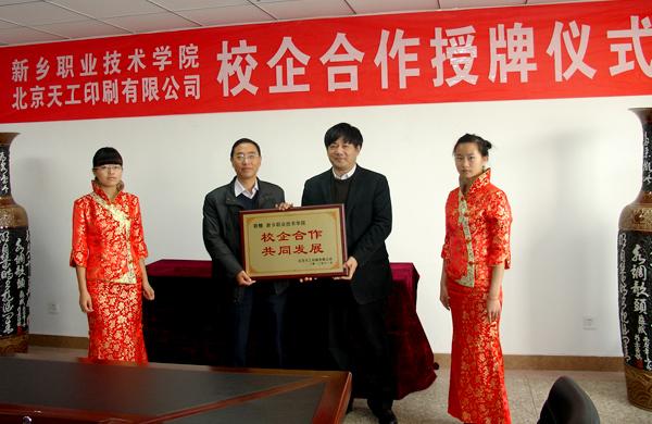 2012年11月21日,北京天工印刷有限公司对学院校企合作授牌、授旗仪式在九楼会议室顺利进行。