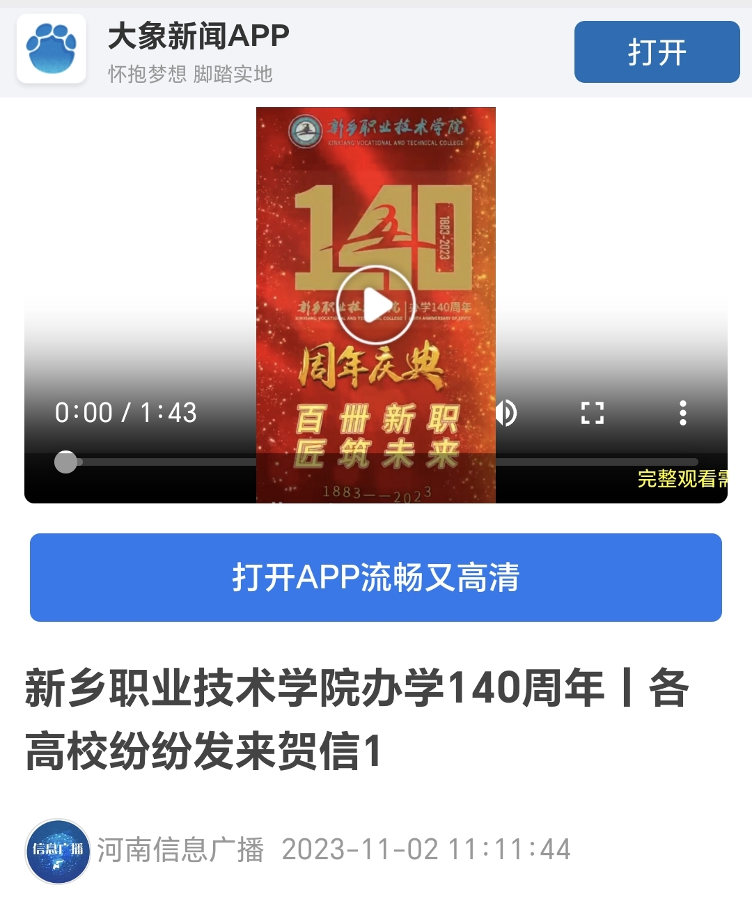 【河南信息广播】新乡职业技术学院办学140周年丨各高校纷纷发来贺信1