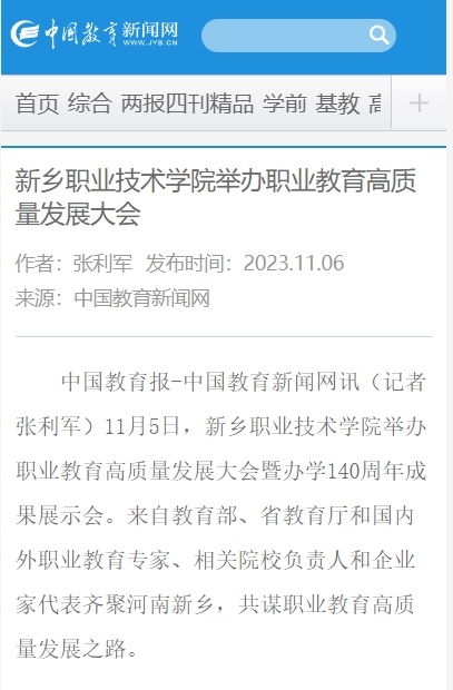 【中国教育新闻网】新乡职业技术学院举办职业教育高质量发展大会