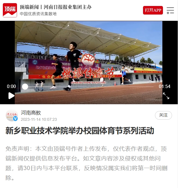 【顶端新闻】新乡职业技术学院举办校园体育节系列活动