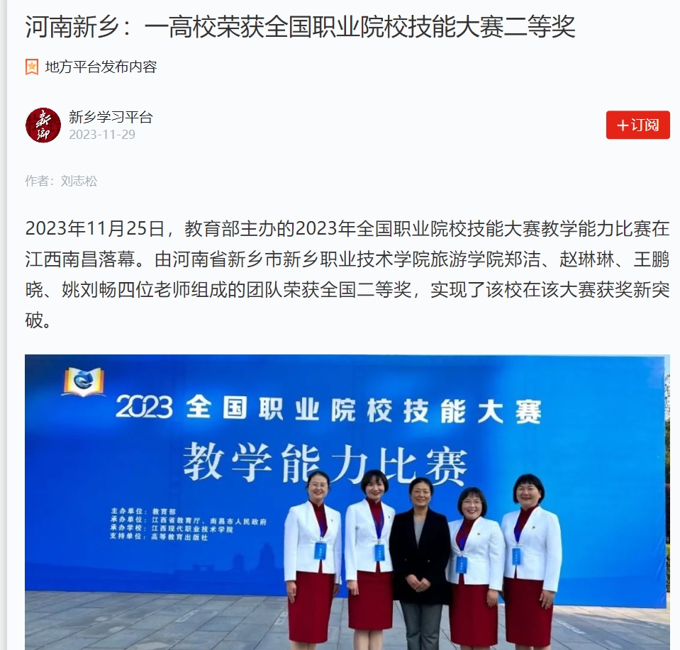 【学习强国】河南新乡:一高校荣获全国职业院校技能大赛二等奖